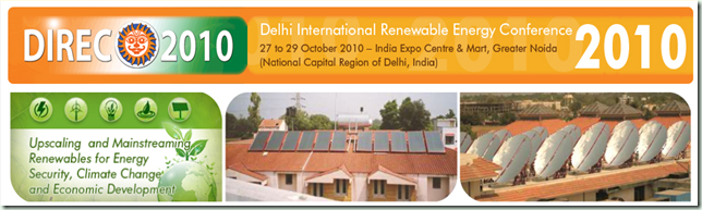 India is hosting the Delhi International Renewable Energy Conference (DIREC) 2010 from October 27-29, 2010 on the theme of “Up-scaling and Mainstreaming Renewables for Energy Security, Climate Change and Economic Development".